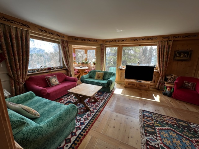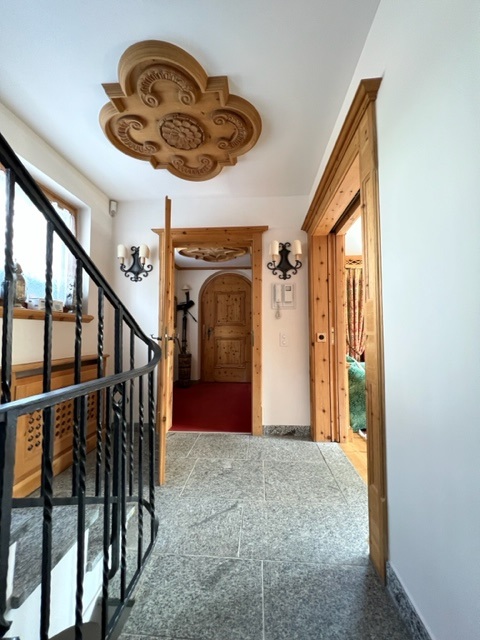 The building was enlarged and completely renovated in 1999/2000, from that moment on ordinary maintenance was carried out. To date the villa is in excellent condition, has no defects or need for renovation. The architecture of the building is captivating with finely decorated facades, bay windows, wrought iron railings, quarry stone elements and stone slab roof. The interior layout is optimal, with spacious rooms and a high standard of finish. Walls, ceilings, doors and fixtures are made of solid Swiss pine, while floors and walls are partly covered in natural stone. The main orientation of the villa is to the south.