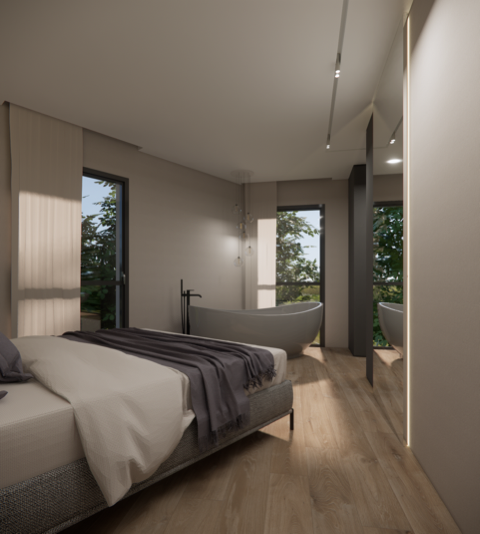Le caratteristiche distintive di questo appartamento includono finiture di alto livello, con possibilità di personalizzare i materiali nel totale rispetto delle vostre esigenze personali. La sostenibilità è al centro del design, grazie a un sistema di riscaldamento a pavimento alimentato da una termopompa aria-acqua e serramenti ad alta efficienza energetica, garantendo così un comfort abitativo superiore allo standard.