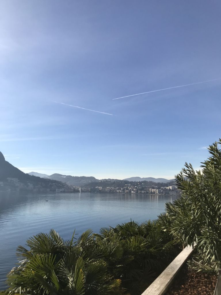 Dalla terrazza, sotto l’imponenza del Monte San Salvatore, il nostro sguardo si perde tra le onde del lago Ceresio contenuto dal Lido di Lugano sino a Capo San Martino, per poi raggiungere il Casinò di Campione e riportarsi sulle sponde di Villa Favorita: difficile trasmettere l’emozione di tanta bellezza.